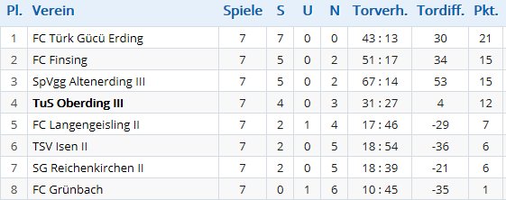 Die Tus Oberdinger E3 konnte am Freitagabend ihre Siegesserie mit einem ungefährteten 7:3 Auswärtserfolg gegen Langengeisling ll fortsetzen.