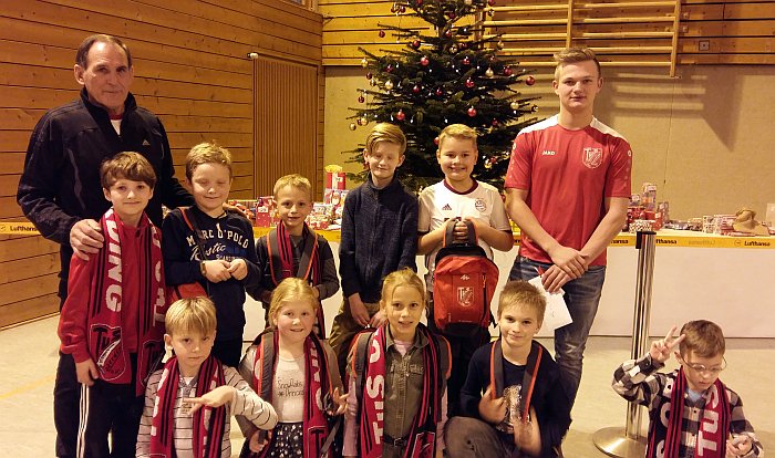 Am 16.12.17 feierte die Jugendabteilung des TuS Oberding in der Mehrzweckhalle Ihre Weihnachtsfeier. Jugendleiter Hubert Merklein begrüßte Eltern und Kinder und berichtete über das vergangene Jahr. Die Eltern konnten bei Kaffee und Kuchen den Nachmittag genießen und zuschauen wie zu den Kindern der Nikolaus kam und eine Geschichte erzählte. Nach einem Weihnachtslied ( Laßt uns froh und munter sein ) lobte er die Kinder der F1 für Ihre gute Leistung bei den Spielen, aber daß man im Training noch konzentrierter sein müßte. Dann bekamen die Kinder ein Paket das sie sofort mit viel Freude aufmachten und ihr Geschenk entnahmen einen Trainingsrucksack und einen TuS Schal. Anschließend konnten die Lose für die Wichtelgeschenke eingelöst werden,so endete für die Kinder ein Schöner Tag.