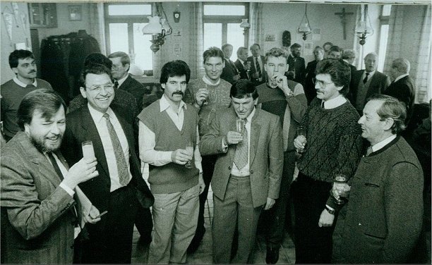 (hinten) Trainer Peter Lutzny, Manfred Kressierer, Wolfgang Hirner, Josef Peis, Bernhard Gerbl, Jürgen Obstoj, Reinhard Maier, Edgar Mayr, Gregor Kohlbeck, Betreuer Johann Hirner