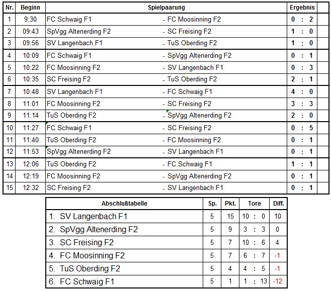 5 | 09:30-13:00 Uhr | F2-Junioren U9 (Jahrgang 2006 und jünger) |