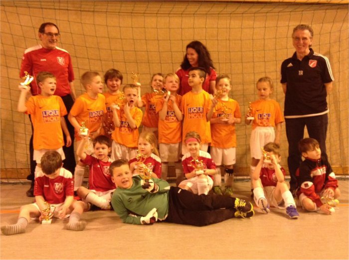 So mußten die TUS Bambinis in das kleine Finale und der Gegner war wieder FC Moosinning widerum gingen die TUS Bambinis mit 2:0 in Führung durch Ali El Katat u Christina Bauer und stürmten immer weiter nach vorne und bekamen durch Konter das 1:2 und 2:2 als man schon an ein 7m schie?en dachte machte Ali El Katat noch das 3:2 für die TUS Bambinis die Freude war nach dem verlorenen gegangenen Halfinale Riesengroß und die Entäuschung war vergessen .