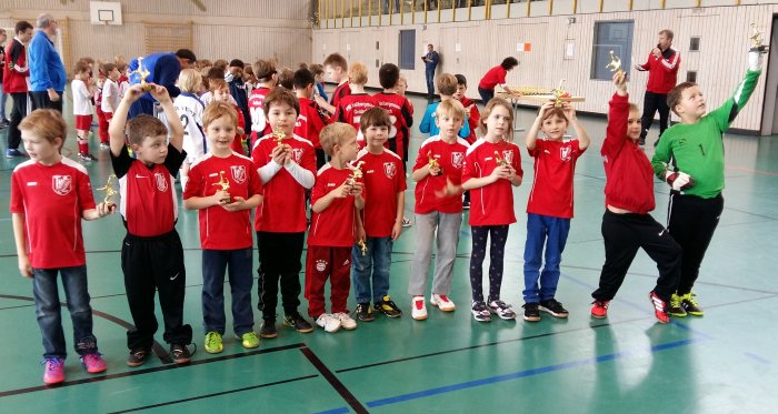 Die F4 konnte den zweiten Platz beim Turnier mit 5 Mannschaften erreichen. Groß war die Freude als die Spieler die Pokale überreicht bekamen !