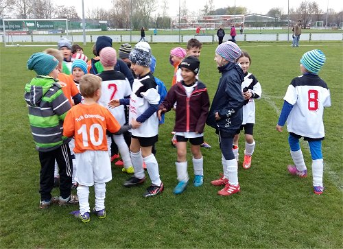 Gegen die ältere und compaktere Mannschaft aus Dorfen musste die TUS F 4 sich mit 1:4 geschlagen geben. Die TUS Kinder kämpften mit großen Mut gegen die Spielerisch stärkeren Gäste die in der 8 min mit 1:0 in durch die Nr 6 Wenzelides Führung gingen . Die Gäste hatten noch mehr Chancen aber Felix Kaiser im Tor machte einige Großchancen der Gäste mit guten Paraden zunichte .in der 19.min konnte Michelle Schulze nach einer Vorlage von Maxi Scherer den Ausgleich erziehlen und man ging mit einem 1:1 in die Halbzeitpause. In der 27 min der 2ten Halbzeit hätte Clemens Mc Ginty beinahe das 2:1 für die TUS ler erziehlen können aber sein Schuß aus 7 m ging links am Tor vorbei, fast im Gegenangriff erzielte Dorfen das 2:1durch Kavalci als die TUS Abwehr den Ball nicht wegbekam den Felix Kaieser vorher schön parriert hatte. Immer wieder versuchten es die TUS ler vor das Dorfner Tor zu kommen aber der Abschluß wollte nicht gelingen so konterten die Dorfner immer wieder und konnten in der 33min das 3:1 durch Ahmadi erziehlen und in der 36min durch einen Strafstoß nach Handspiel durch Kavalci das 4:1 erziehlen. Mit der dieser guten Leistung dafür ga es Gummibärchen lässt gut in die Zukunft blicken !