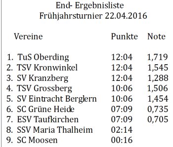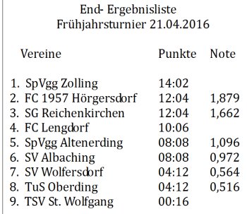 21./22.04.2016 Frühjahrs- & Freundschaftsturnier