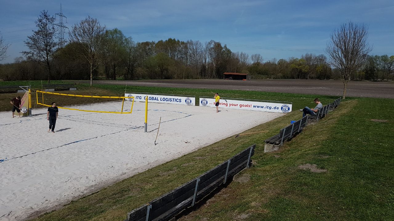 Neben dem Aufbau des Spielfeldes wurden die Türen der Hütten überarbeitet und die Zuschauerbänke wegen Witterungsschäden entfernt. Leider musste man auch kuriose Entdeckungen wie Fliesenreste und anderen Unrat im Sand entdecken. Aber nach einer gründlichen Reinigung konnte alles entfernt werden. Ähnliche Beobachtungen bitte jederzeit an die Abteilungsleiter oder andere Vereinsmitglieder melden. Viele weitere Arbeiten stehen diesen Sommer noch ins Haus, aber ein Anfang ist gemacht und der Spielbetrieb kann starten. Das Wetter passt Mitte April zumindest schon mal.
