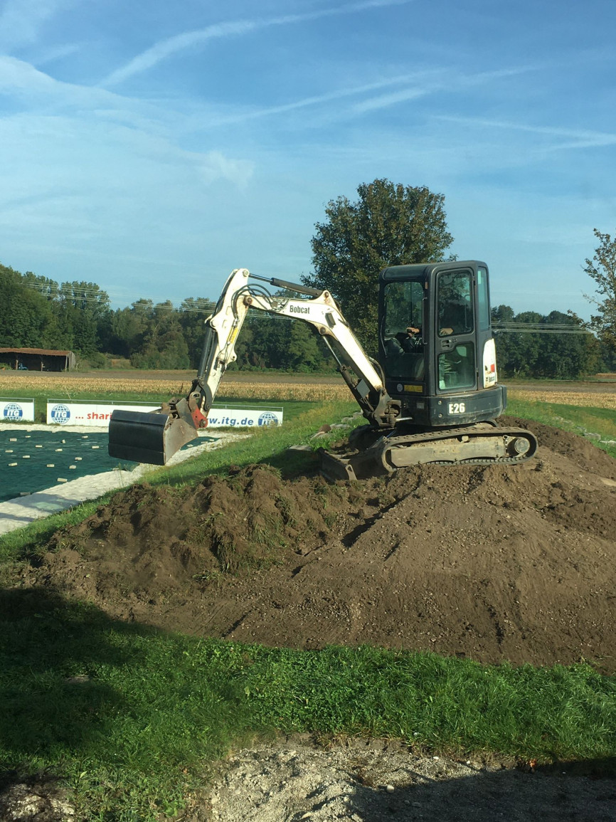 Die Alte war in die Jahre gekommen und langsam marode geworden. Nach dem Abbruch stehen jetzt umfangreiche Erdarbeiten an. Ein neues Fundament muss her damit die neue Hütte in Containerform angelifert und aufgestellt werden kann.