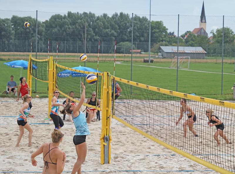 Nach den ersten Spielen forderte nicht nur der Gegner sondern auch der zunehmende Sonnenstand die Spielerinnen und Spieler heraus. Trotzdem wurde bei sengender Hitze um jeden Ball und Punkt gekämpft! Das Ende der Vorrunde stellte die Turnierleitung um Thomas Forster und Christian Sieracki auf die Probe. Nachdem man sich erst mit dem verfügbaren Turnierprogramm vertraut machen musste hatten nach den Spielen jeder gegen jeden alle weiblichen Teams die gleiche Anzahl gewonnener und verlorener Begegnungen. So brachte erst der Vergleich von einzelnen erspielten Bällen die Entscheidung um den Einzug in die Viertelfinals.